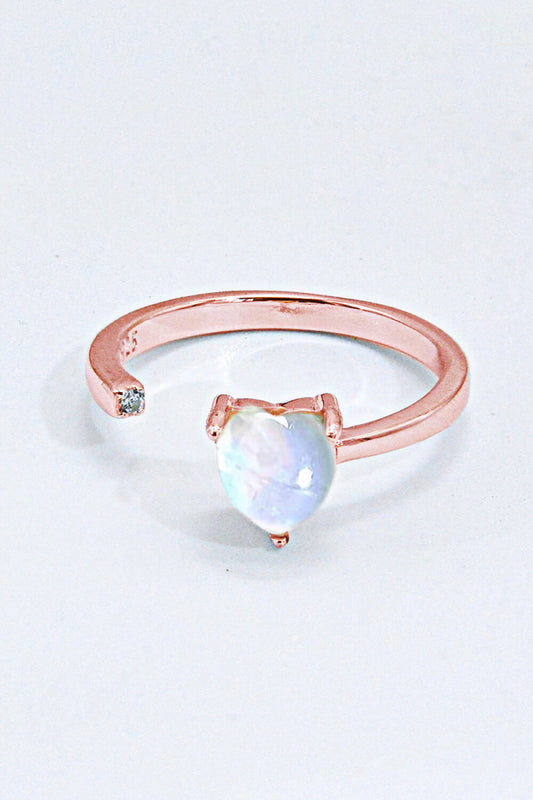 Inlaid Moonstone Heart Adjustable Open Ring