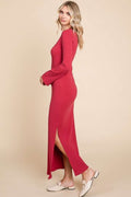 Culture Code Full Size Round Neck Bodycon Bell Maxi Dress