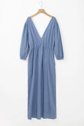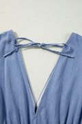 Tied Plunge Three-Quarter Sleeve Denim Dress